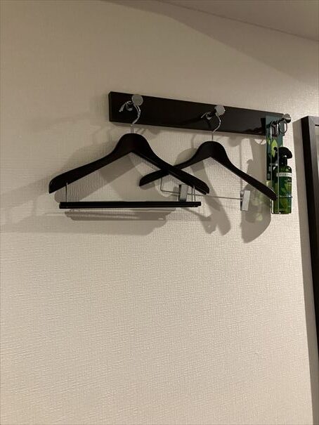 置き場所も多くないのでたくさんの服を掛けることは出来なさそうです。